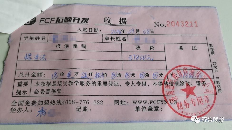 “当时宣传材料上就写着可以15分钟看完一本200页的书,几秒钟就可以看一页书等等。”刘丽说,为了不让孩子输在起跑线上,她就来到位于济南市天桥区的这家名为凡思教育的公司,并花费3万余元在该校区报名了“脑开发课程”。