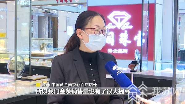 中国黄金南京新百店店长滕萍介绍,他们店金条的零售价基本是在每克380多元,最近的金价趋势是一个下滑趋势,同样也给金条销售带来一定的销售量,老顾客很多就回头了,所以金条销售量也有了很大提高。