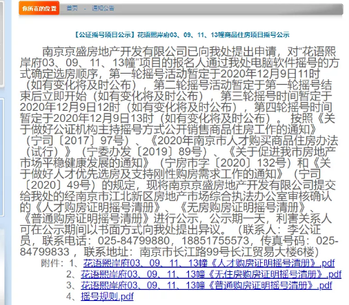花语熙岸府于今日(12月9日)上午11点进行了公证摇号。