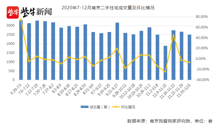 扬子晚报网12月10日讯(记者 马祚波)临近年末,南京二手房市场出现降温迹象。记者从多家中介获悉,近期二手房的交易量有所下滑,连续两周出现回落,不过挂牌价依然坚挺,较11月上涨了200元/㎡左右。