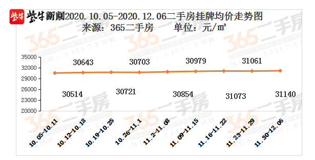 从挂牌价格来看,365淘房的统计数据显示,上周南京全市二手房挂牌均价为31140元/㎡,比前一周的31061元/㎡上涨了76元,也比11月份小涨了200元/㎡左右。从区域挂牌均价上看,建邺区排名第一,挂牌均价为44904元/㎡,鼓楼区以41377元/㎡的均价位列全市第二,玄武区挂牌均价38513元/㎡,排在全市第三。