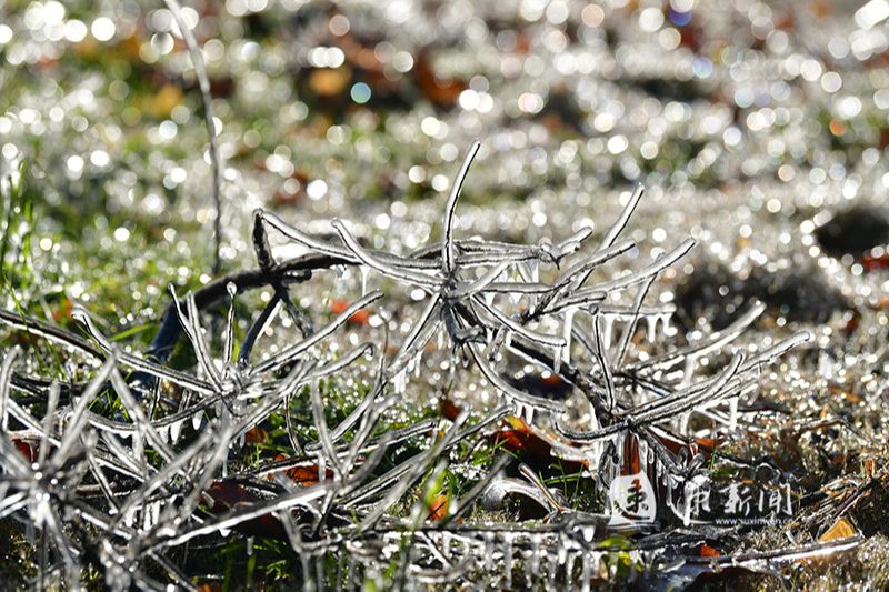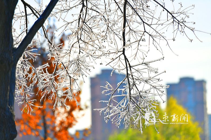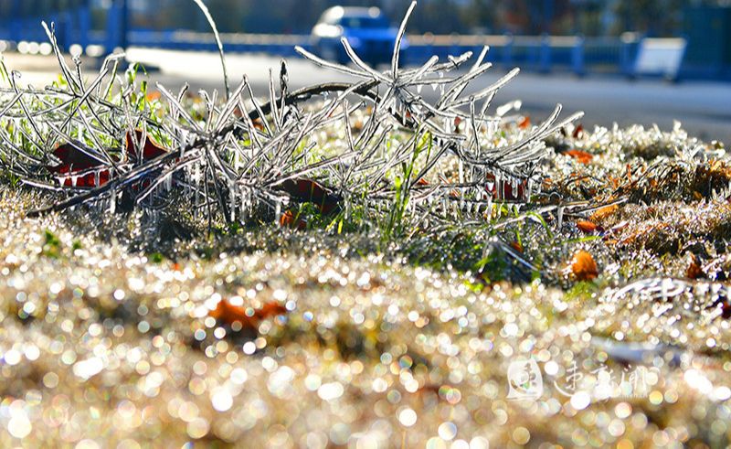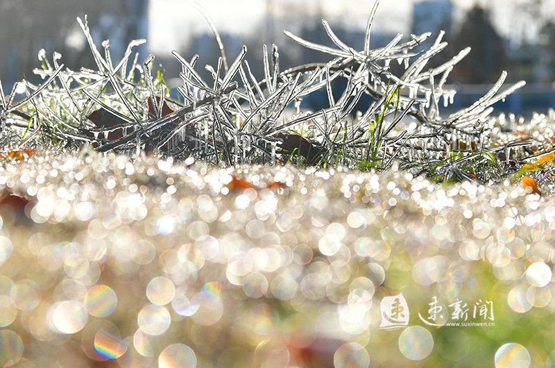 12月14日上午,在宿迁市区河清路两侧,几个行道树上挂满了晶莹透彻的冰凌,在阳光的照射下,显得格外耀眼,在冬日的清晨,带来一份特色的惊喜。