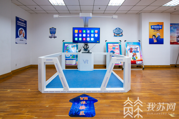 在现场记者看到,整个VR体验馆占地面积约150平方米,一期投资15万元,与学校餐厅、图书馆、运动馆紧密相连,是扬州大学的“闹市区”,日均接待学生人数达200人以上。