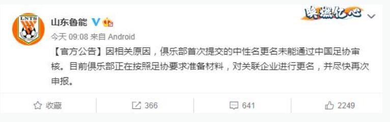 11日,山东鲁能足球俱乐部发表官方公告称:“因相关原因,俱乐部首次提交的中性名更名未能通过中国足协审核。目前俱乐部正在按照足协要求准备材料,对关联企业进行更名,并尽快再次申报。” 自从去年12月14日,中国足协在官方网站下发《关于各级职业联赛实行俱乐部名称非企业化变更的通知》,近一个月时间,业内关注度很高的中性化名称进程一事,始终存在分歧,甚至有球迷来到俱乐部主场下跪抗议…… 更改中性化名称为什么那么难?究竟动了谁的奶酪?俱乐部和球迷的诉求能得到满足吗?
