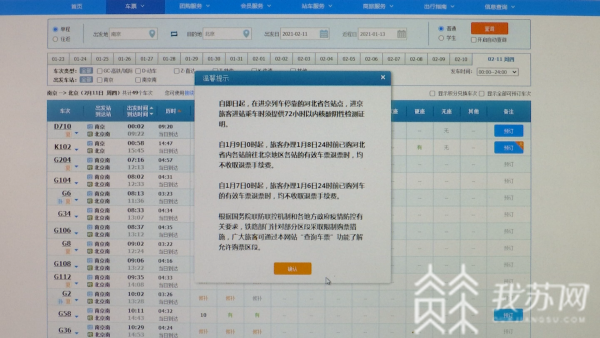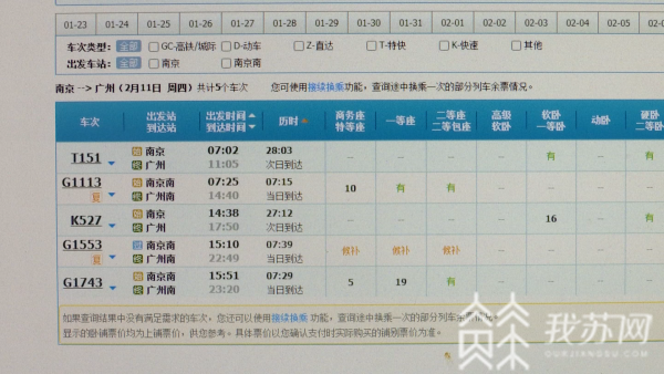 今天中午,记者登录12306官网发现,2021年2月11日,南京前往北京、成都、哈尔滨、西安等热门方向的火车票,并没有出现秒光的现象,不少好的出行时段均有余票。