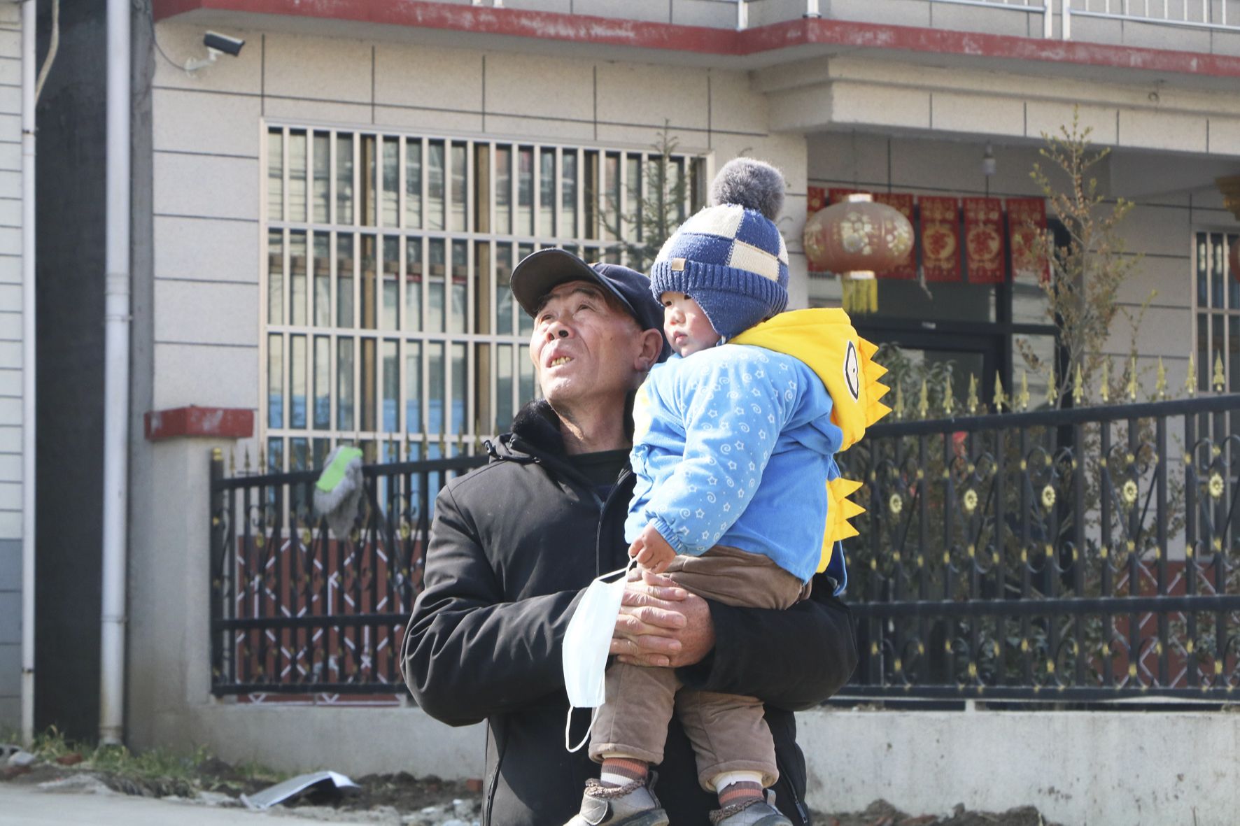 1月31日,在宿迁市沭阳县潼阳镇的扎埠村,一架无人机在村子上空来回盘旋,今年28岁的该村党支部书记王乐乐正通过无人机向村民们喊话,此举吸引了很多村民驻足观望。