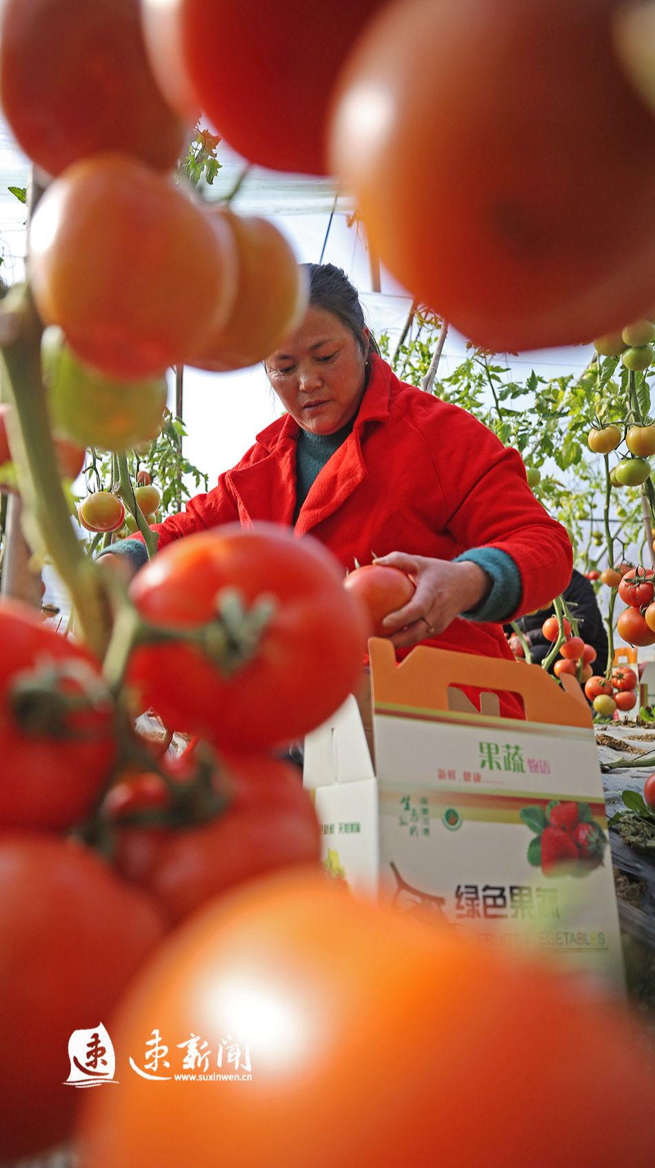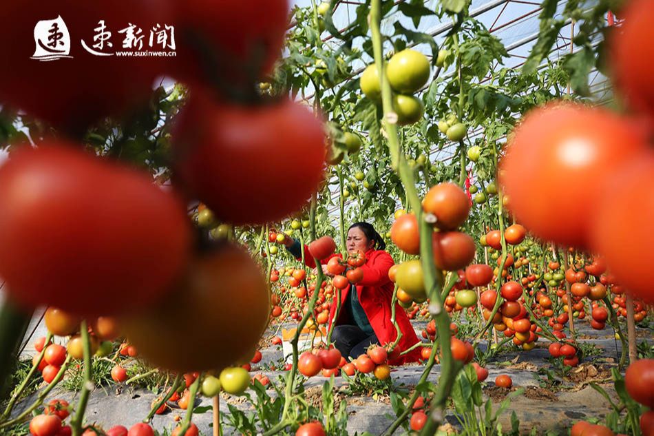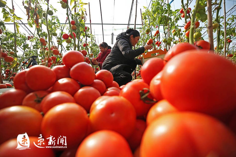 2月2日,在宿迁市泗洪县孙园镇刘德居委会的蔬菜种植基地,菜农正在大棚里采收西红柿。2月3日是立春节气,泗洪县各乡镇的农民逐渐告别冬闲,在田间地头忙碌起来,抓好农作物的管护、备耕、收获等,乡村呈现出一派生机盎然的忙碌景象。