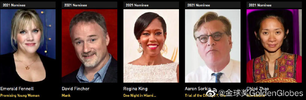 电影方面,赵婷、雷吉娜·金、埃默拉尔德·芬内尔三位女性导演提名最佳导演奖,创造了历史。这是金球奖历史上第一次同时有三位女性导演被提名,赵婷也成为了首个获得金球奖最佳导演奖提名的中国女导演。《曼克》以6项提名领跑电影类。赵婷执导的电影《无依之地》拿下最佳导演提名、最佳剧情类影片、最佳女主角、最佳剧本4项提名。