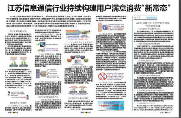 每年3月,江苏省通信管理局联合省内三家基础运营企业开展为期一个月的行业“心系用户、满意消费”集中宣传活动,主要围绕展示江苏信息通信行业“诚信服务、放心消费”服务理念、服务民生和服务社会方面举措、防范打击通讯信息诈骗和整治骚扰电话方面取得的成效、“提速降费”工作落实情况、优秀服务明星和先进事迹等内容开展集中宣传。