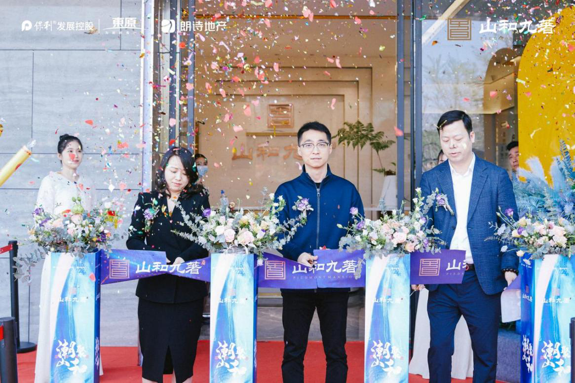 上午10点58分,来宾们云集南京潮前生活馆,期待着项目亮相。东原集团南京公司总经理韩鹏代表三家开发商致辞,他在发言中指出,山和九著府所在的板块云集了滨江资源、邮轮经济、都会游乐、宜居住区等多元价值,是一座24小时跃动的CAZ(中央活力区),祝愿山和九著府为时代的弄潮儿书写面向未来的城市人居新篇。随后,南京东原总经理韩鹏、保利江苏副总经理张翼、南京朗诗副总经理刘琳琳为项目剪彩,标志着山和九著府正式面世。