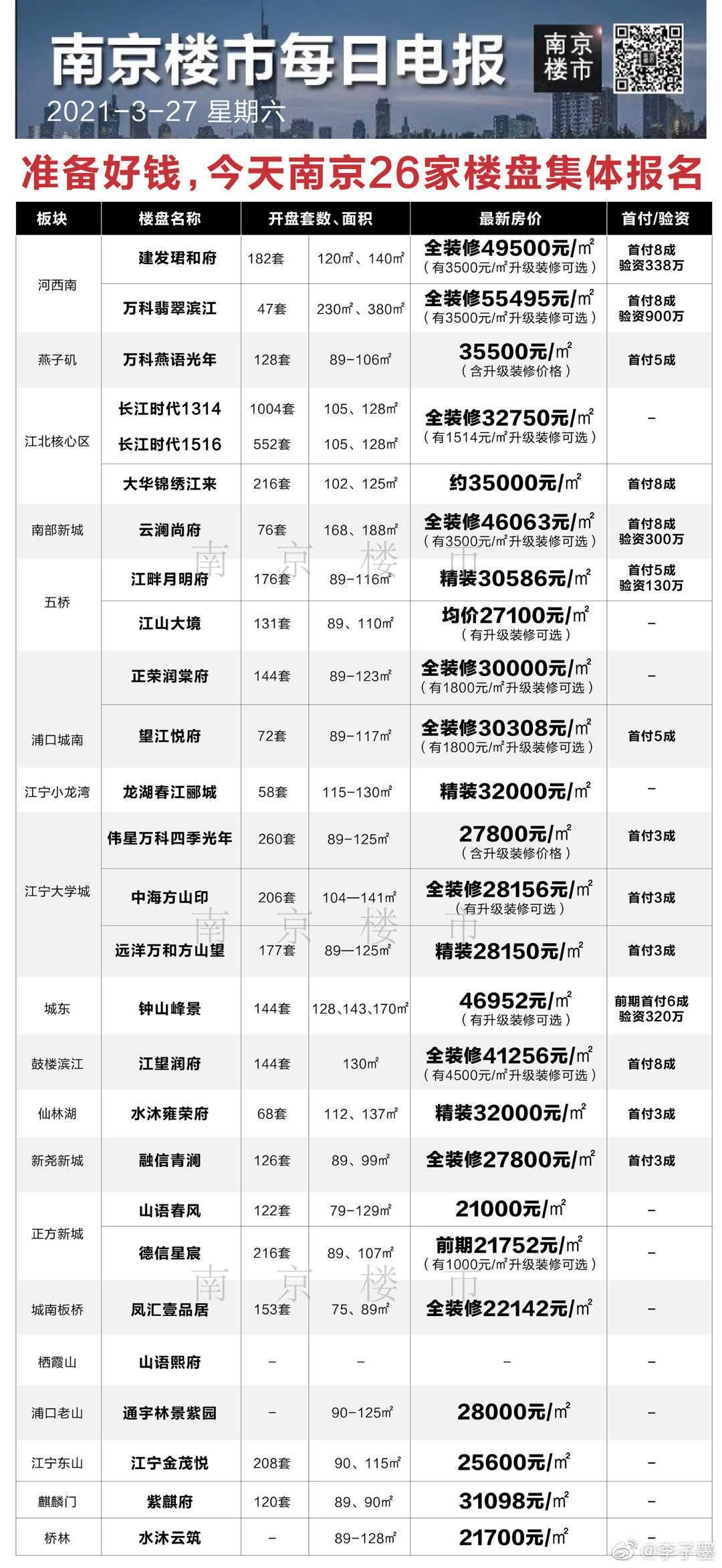 扬子晚报网(记者 马祚波)住宅用地集中上市,南京的楼盘也集体领取了预售证!截至到3月26日晚间11点,南京网上房地产当日更新的领证信息多达近30家楼盘,其中有26家将在3月27日同时报名,迎来楼市“金三”最强的一波开盘潮。