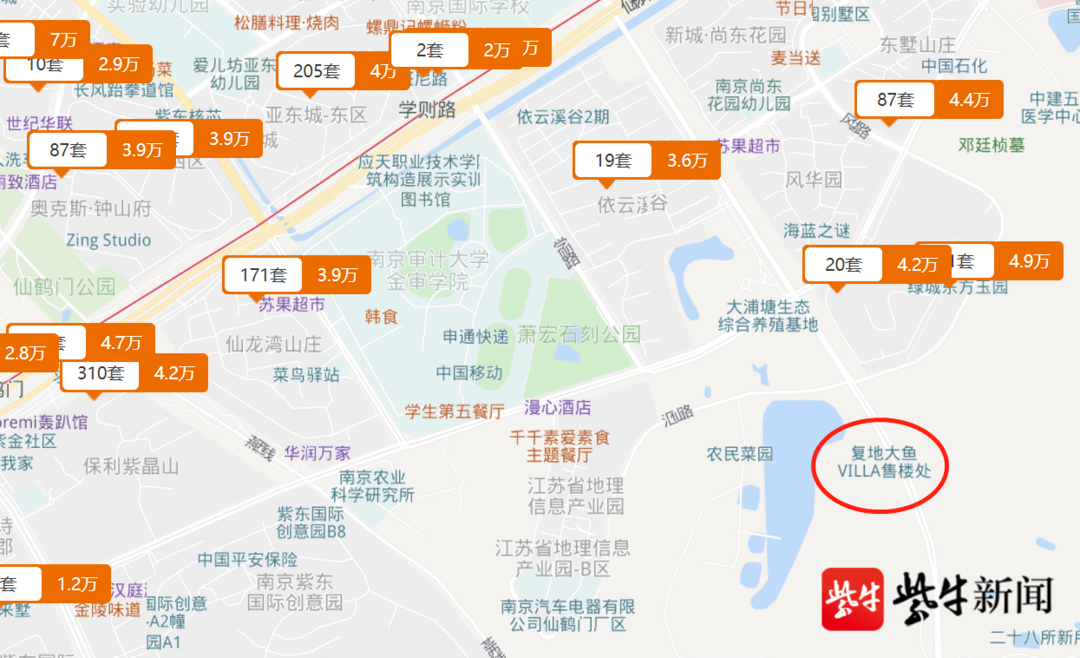 这套退房位于该项目的2幢2单元103室,含负一层、夹层和一层,单价25798元/㎡,面积511.02平方米,总价高达1318万。在365淘房、链家网上记者看到,大鱼VILLA目前并没有二手房入市,周边的二手房报价在39000元-50000元/㎡之间。而在别墅市场上,仙林板块的别墅房源并不多见,买房自住的买家居多,二手市场并不活跃,当地的高端改善盘高科紫薇堂二手报价为60000元/㎡,是区域内报价最高的项目之一。