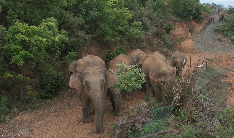 5月24日晚8时,14头亚洲象迁徙到玉溪市峨山县,在大维堵村一带活动。