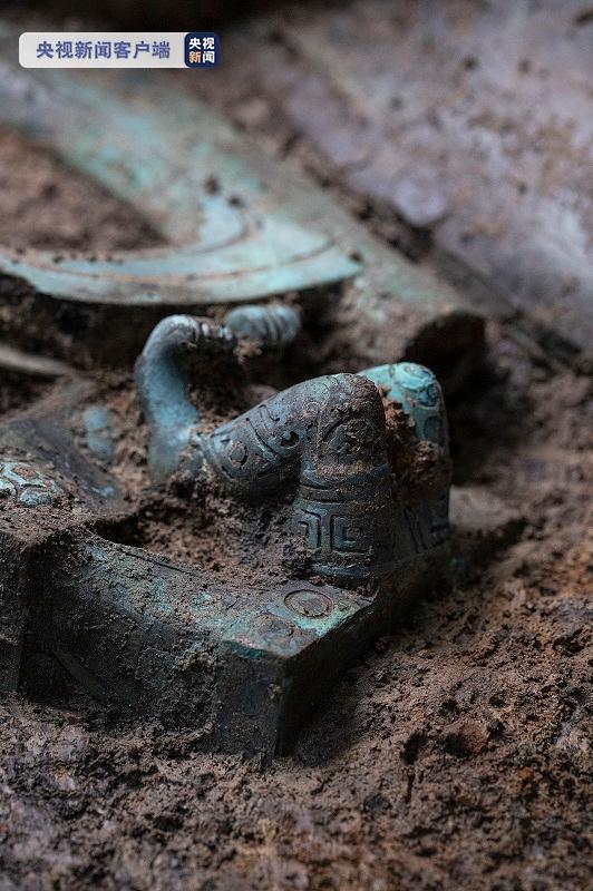 截至目前,6个三星堆祭祀坑已提取出土象牙、青铜器、金器、玉石器等重要文物534件及残破文物碎片近2000件。3、4号坑内象牙提取工作已基本完成,下一步将对众多揭露出来的青铜器进行发掘;5号坑比较特殊,圆形金箔片散落众多,专家会商后,决定将对其局部开展实验室考古;6号坑的“木箱”也准备整体提取;7号坑开辟了一个小探方,在填土下方已发现密布的象牙;8号坑在近20厘米的灰烬层中已经发现神树、金器、铜面具等各种残片,同时,最新出土一件金面具残片,耳朵和嘴巴的轮廓清晰可见。