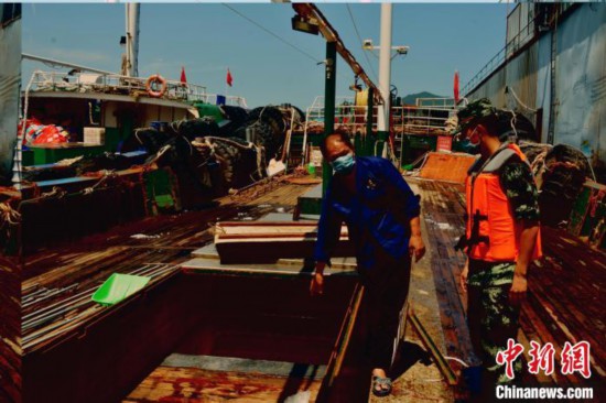 执法员现场检查涉嫌伏季休渔期捕捞船舶。 福州海警局供图