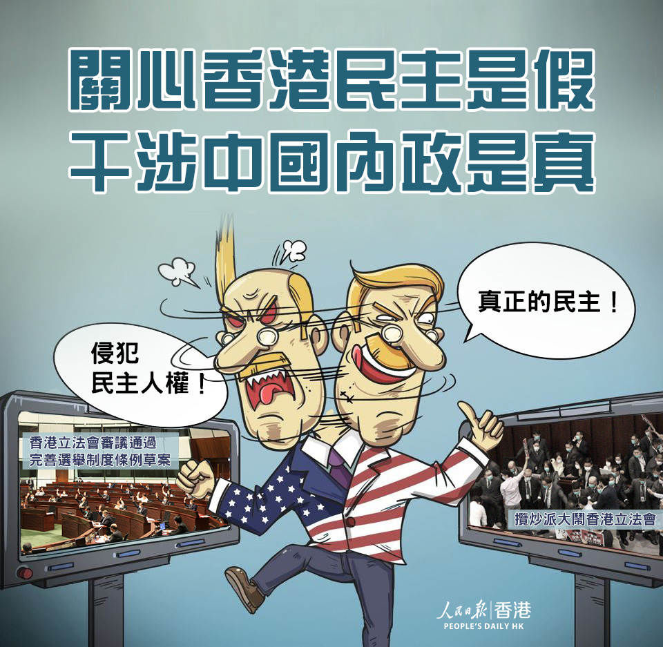 近日,香港立法会高票通过《2021年完善选举制度(综合修订)条例草案》,获得香港各界热烈拥护和支持,这却让一些美国政客坐不住了。美国国务卿布林肯又跳出来,声称条例限制了香港民众参与自治,甚至呼吁释放所有触犯香港国安法的嫌犯。相关言论再次赤裸裸地插手香港事务,干涉中国内政,更暴露出美西方政客干巴巴地硬打香港牌的窘态。