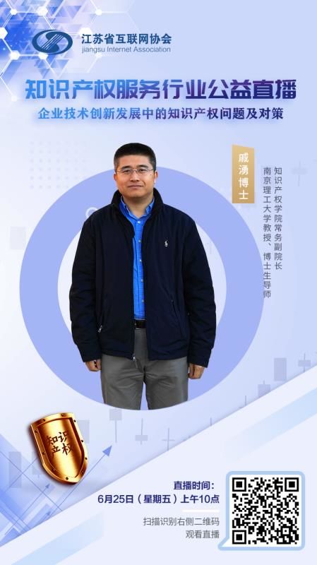 随着创新的持续发展并向经济社会生活全面渗透,加强知识产权保护的意义也早已不限于科技创新领域,科研成果的转化运用、良好营商环境的营造、企业可持续竞争优势的建立,无不需要知识产权制度保驾护航。6月25日上午10点, 江苏省互联网协会主办的“知识产权服务行业公益直播”由戚湧博士、教授、博士生导师主讲“企业技术创新发展中的知识产权问题及对策”,向网友和企业家宣传知识产权重要性及企业知识产权管理建议,帮助企业更好的管理知识产权来鼓励创新,从而使企业在复杂的经济环境中提升竞争优势。