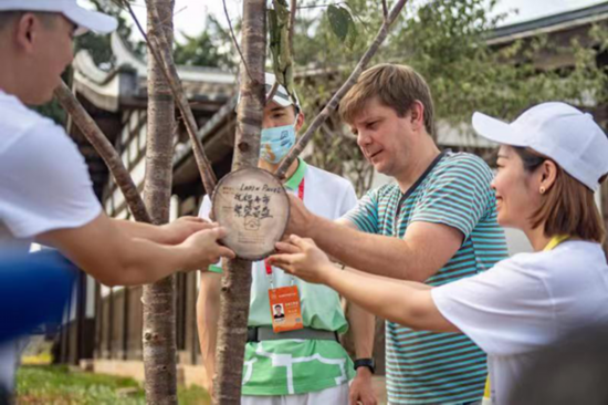 当天,第44届世界遗产大会“世遗林”植树活动在梁厝特色历史文化街区举办,中外嘉宾们纷纷在签名树牌上寄语,留下美好祝福。