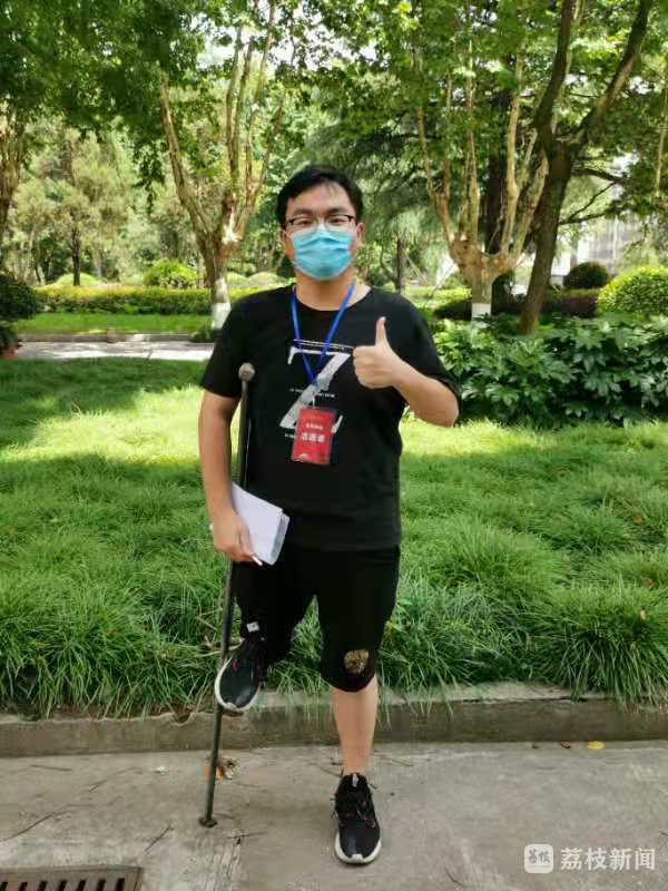 乐强是扬州大学的一名在读研究生,就像他的名字一样,这位小伙子乐观又坚强。因为右腿先天性发育不良,乐强一直戴着假肢学习生活。疫情发生后,他还主动申请,协助老师投入疫情防控工作。