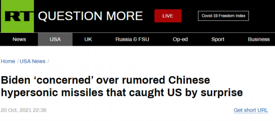 RT注意到,华盛顿的反应是在《金融时报》上周报道之后做出的。《金融时报》当时援引消息人士的话声称,中国军方在8月间曾发射一枚火箭,搭载一枚极音速滑翔飞行器,这枚飞行器在绕行低轨道太空后,向下巡航飞向目标。