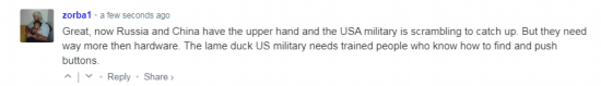 拜登这番最新表态也在社交媒体上引发关注,RT报道的评论区内,有网友表示,“太好了,现在俄罗斯和中国占了上风,美国军方正在争相追赶。但他们需要的远不止硬件……”