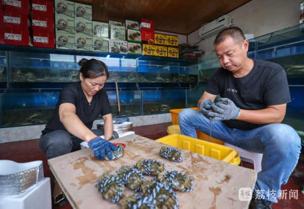 “公蟹在7两左右,母蟹在5两左右,估计一亩产蟹150斤,行情不错,一口价80元——90元,批发给广州、上海、扬州等地。”张德富兴奋地说。