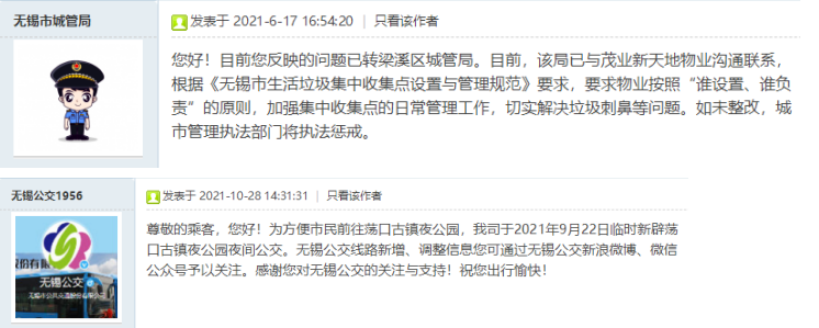 2019年,在无锡市委网信办的支持下,东林书院论坛开设“回音壁”板块,这可以看作“东林第e现场”的1.0版本,栏目主要就一些网友集中反映的问题,积极联系相关职能部门协调处理。目前东林论坛共计近30个职能部门实名入驻,各部门就涉及的网民关切的问题,采取实名发帖、跟帖的形式及时回应,推动网友反映的民生问题得到切实解决,形成一座良好沟通的桥梁。