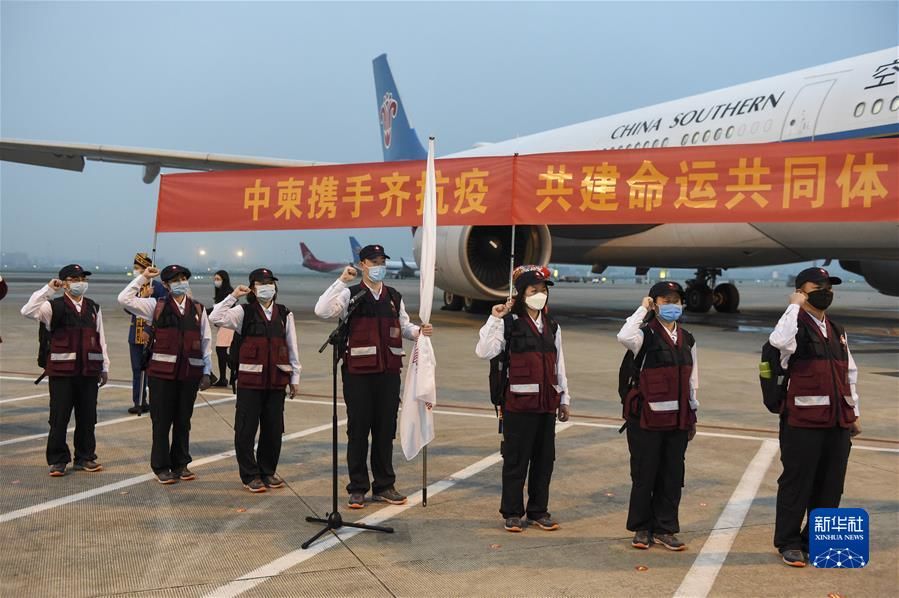 在南宁吴圩国际机场,广西壮族自治区卫健委选派的抗疫医疗专家组启程前往柬埔寨(2020年3月23日摄)。新华社记者 曹祎铭 摄