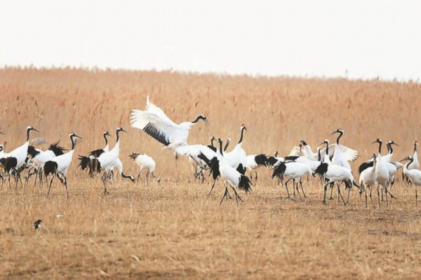 盐城国家级珍禽自然保护区内,大批丹顶鹤在觅食、嬉戏。 贾安东 顾继红 卢钰 摄
