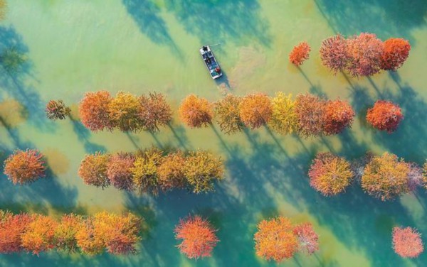 秋末冬初,泗洪县临淮镇水杉进入最佳观赏期,色彩斑斓,如诗如画。 张连华 摄