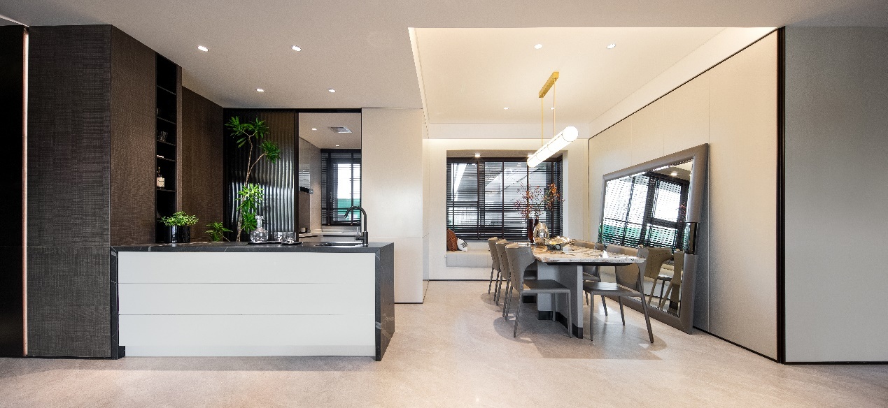 精装设计上,引入金茂金牌精装设计团队,以高端酒店式风格,载入酒店般的艺术细节,为业主打造雅奢的生活方式,例如:茶色波纹玻璃选材、黑框玻璃移门等,让酒店式度假气息成为业主的日常。