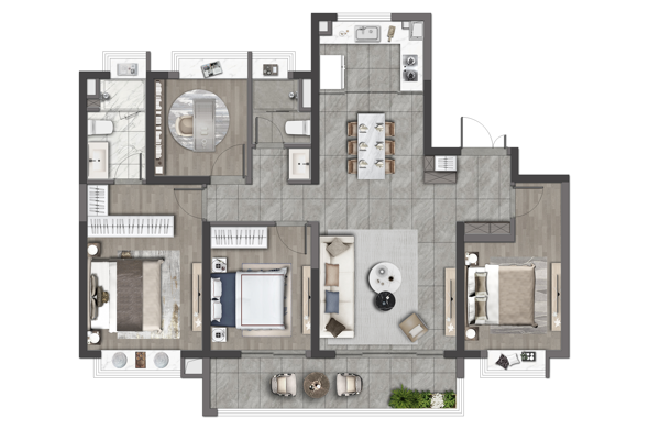 当然,云萃府建筑面积约143㎡户型的任何一个细节,也都经得起推敲。除了高品质、高标准的精装,约13.3m面宽、四开间朝南、约7m阔尺阳台、全飘窗等设计亮点颇多。