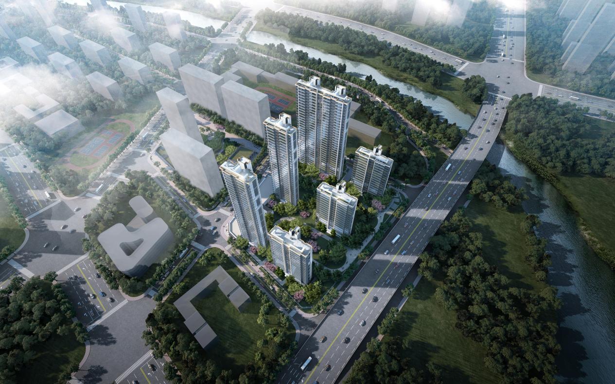 云萃府整体建筑布局为东低西高,地块极为规整,纵观片区,云萃府是唯一拥有中央景观轴的社区,这也决定了云萃府未来园林景观空间的丰富性。