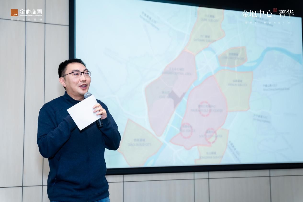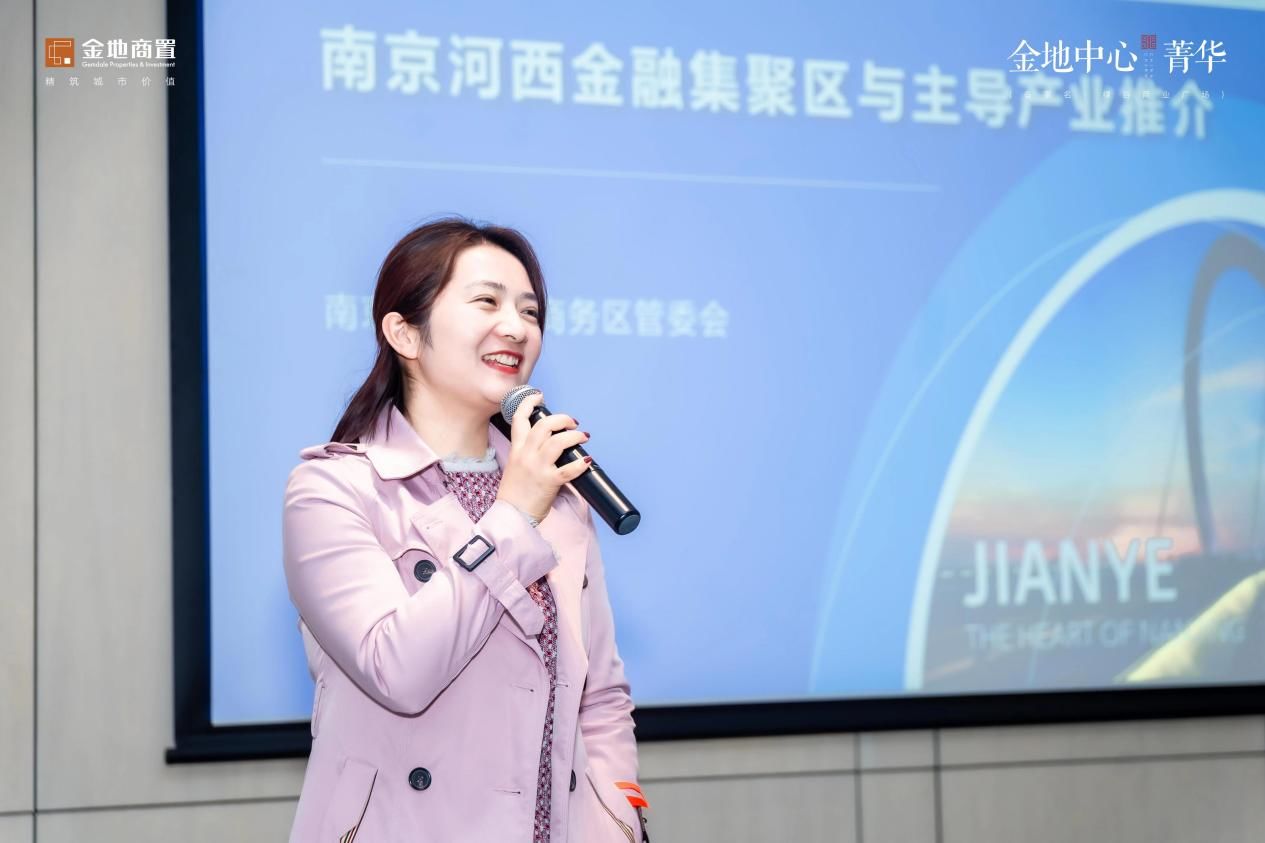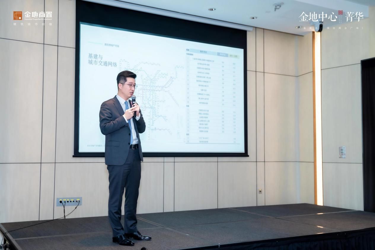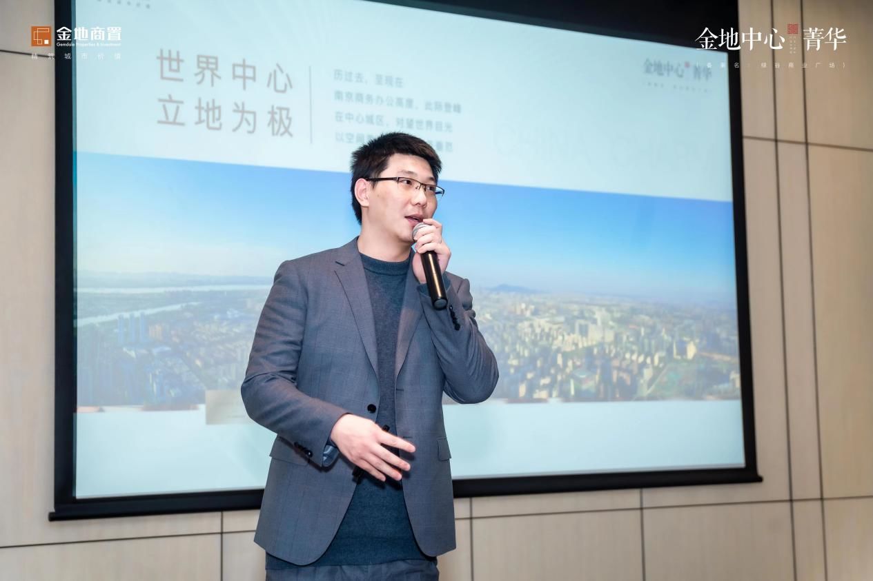 紧接着,金地中心菁华项目营销经理徐思明登台分享,娓娓道来作为商办专家金地商置近年来来的征途与际遇,并表示,金地中心菁华作为金地商置东部区域布局河西南的重磅之作,有着高度品牌战略意义。