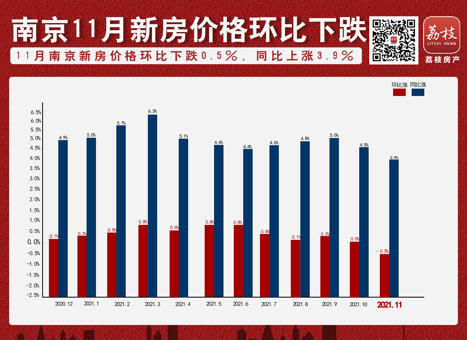 1、南京房价降了!11月南京新房价格环比下降0.5%