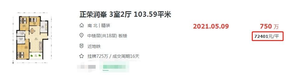 要知道,前段时间河西南葛洲坝中国府以约6.4万/㎡的价格收官(来源南京网上房地产),正荣润峯、金地中心次新房二手房成交价已进入6万+/㎡时代,最高成交价更是破7.2万元/㎡。(来源链家)