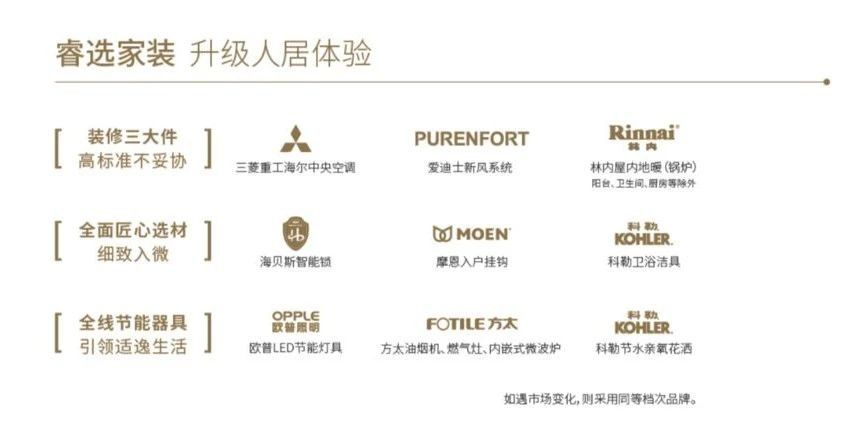 装修上,为了给业主带来更好的居住体验,项目配备了地暖、中央空调、新风系统三大件,且地暖是林内的、中央空调是三菱海尔重工的、新风是爱迪士的。