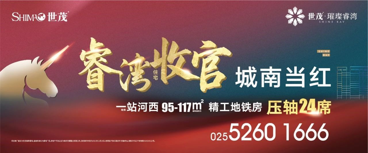 免责声明:本宣传资料仅为要约邀请,所载全部内容仅供参考,均不构成要约,一切以双方签订的商品房买卖合同及其附件约定及政府最终审批文件规定为准。项目推广案名为世茂璀璨睿湾,备案核准名为睿湾广场。房地产开发企业为南京世耀置业有限公司。本公司保留修改的权利,敬请留意最新资料。资料制作时间为2021年12月3日,有效期截止2021年12月3日。预售许可证:2020100122。