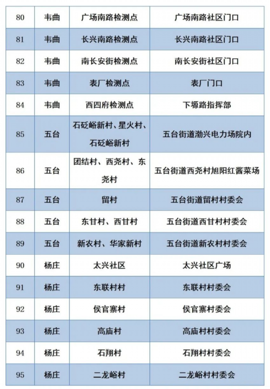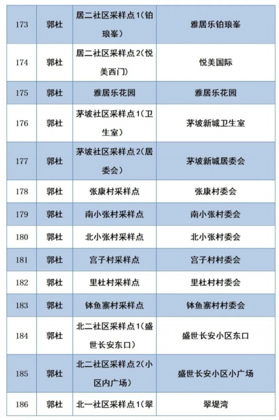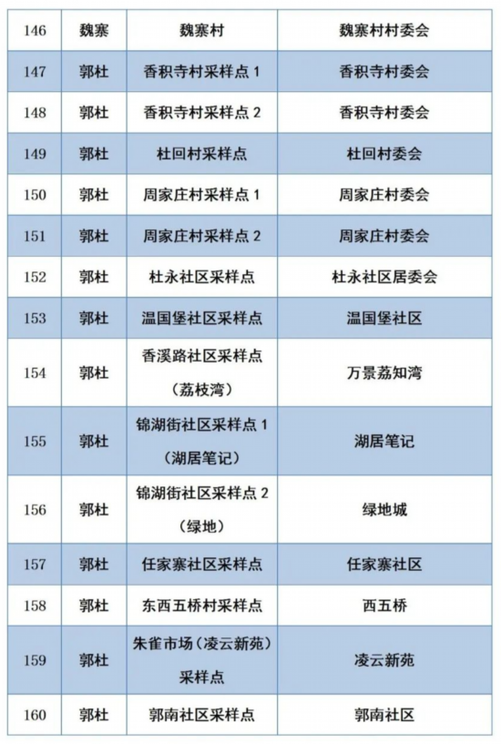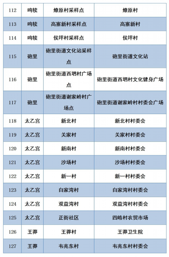全区各街道均设采样点