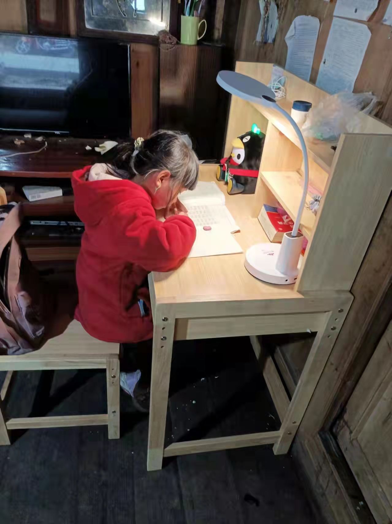 据了解,这是由碧桂园集团国强公益基金会在全国脱贫攻坚取得全面胜利的大背景下,针对欠发达地区家庭学习环境条件不好的学生发起的“心愿·100梦想空间计划”,即为6-11岁正处于身体发育期的学生定制化打造“五个一”家庭学习空间——一套实木学习桌椅、一盏充电学习灯、一个智能陪伴机器人和一本有分量的课外书。