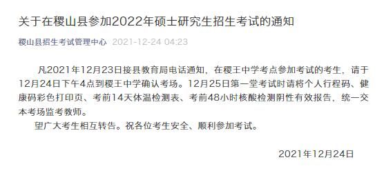 荔枝新闻讯 12月24日,山西省运城市稷山县招生考试管理中心发布《关于在稷山县参加2022年硕士研究生招生考试的通知》,以下为通知全文: