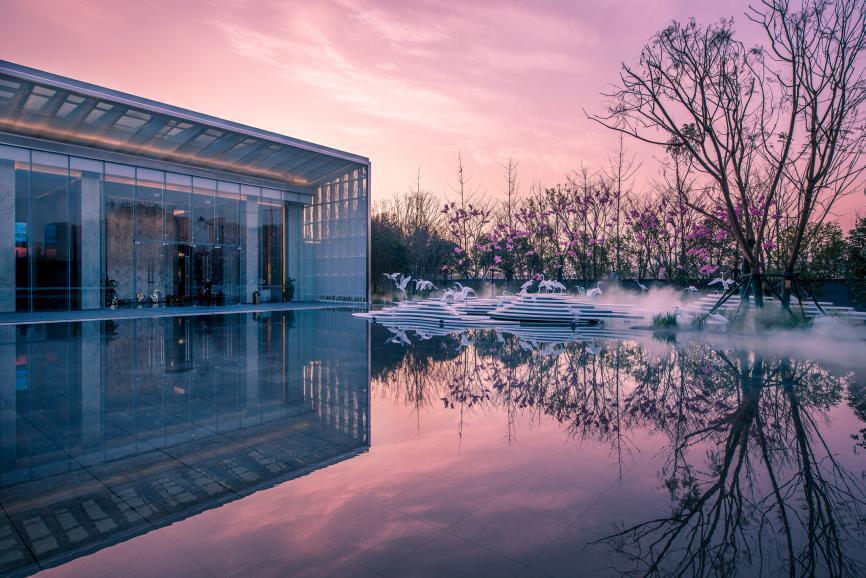 平面户型设计经济适用,空间可分可合;立面设计简洁现代,选材高标准,美观雅洁。项目塑造了全龄化、人性化的、交互式的、体验式的内外结合的活动空间,架空底层渗透延伸,与园林景观融为一体,相得益彰。景观空间点线面结合,大开大合;坡地景观特色突出,通过微地形塑造、季节变化及本地化适生乔木、花灌木、景观小品艺术化配置,植物群落层次丰富,实现了“四季有花、处处皆绿、步移景异”。