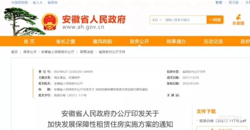 央广网合肥消息(记者徐鹏)1月5日,安徽省政府办公厅印发的《关于加快发展保障性租赁住房的实施方案的通知》指出,明确合肥、芜湖、蚌埠、淮南、阜阳、六安6市为安徽省发展保障性租赁住房的重点城市。