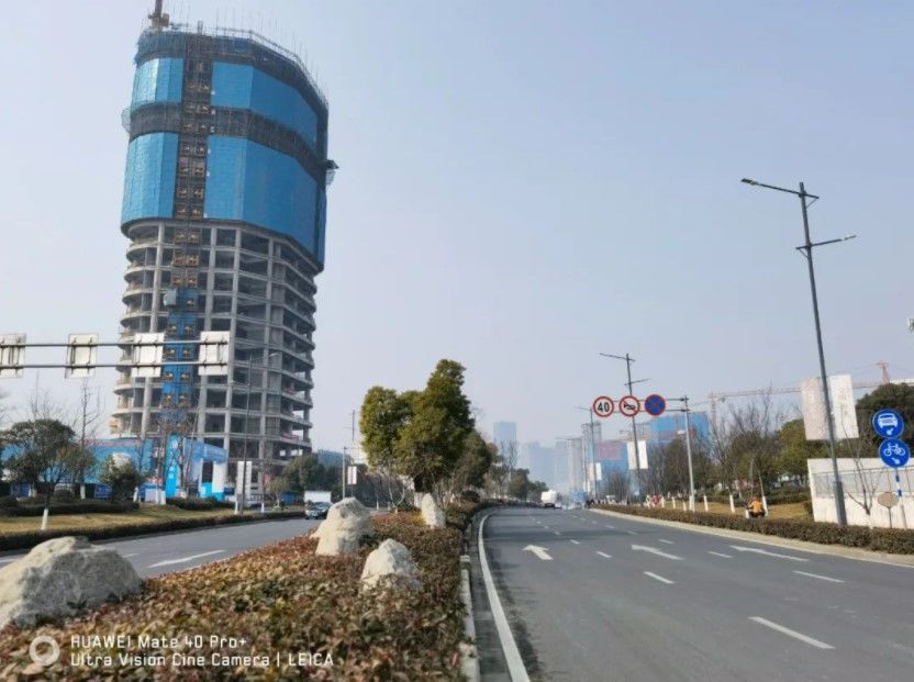 ↓↓项目西侧,通过文景路连接南京软件园的核心区。画面左侧的这栋建设中的百米高楼,就是正在建设中的江北永安大厦,右侧正在建设的城市综合体,是东大成贤学院地铁口的大型综合体新北时代中心。