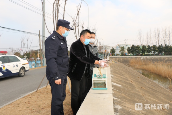 1月20日下午2点左右,泰州医药高新区(高港区)永安洲镇居民李先生打报警电话求助,电话那头,李先生忐忑的声音传来:“刚刚有一只鸟撞到了我家鱼塘的围栏上,好像受伤了,这会儿也不飞了,我看它嘴巴长得和其他鸟不一样,怕是什么保护动物啊,我不敢碰它,请民警来帮帮忙吧!”