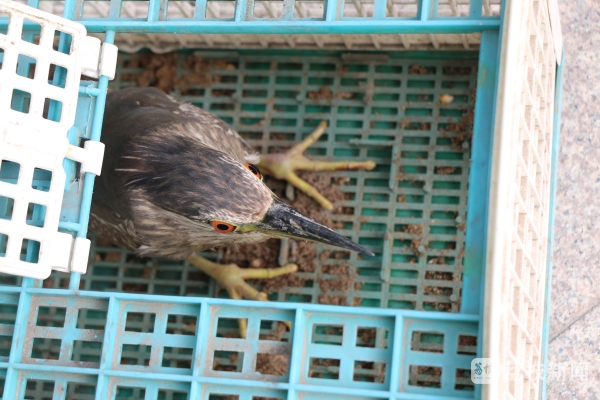 据了解,夜鹭是国家二级保护动物,主要以鱼、蛙、虾、水生昆虫等动物性食物为食,可能因为近期天气寒冷,夜鹭无法觅食水中鱼类,导致其一头撞上市民家中鱼塘的围栏,所幸报警救助较为及时,夜鹭生命安全未曾受到影响。