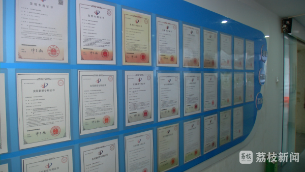2021年,他们的一个项目刚刚获得了中国专利优秀奖,而现在所看到的这一整面墙的荣誉,也见证了他们的成长和蜕变。省市区三级对创新的倾力扶持,让企业“从无到有”“从弱到强”“从跟随到领跑”。