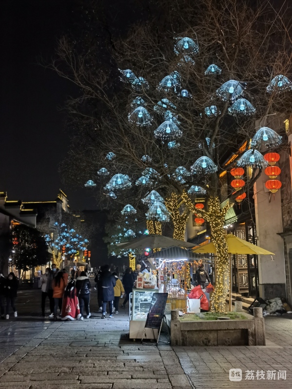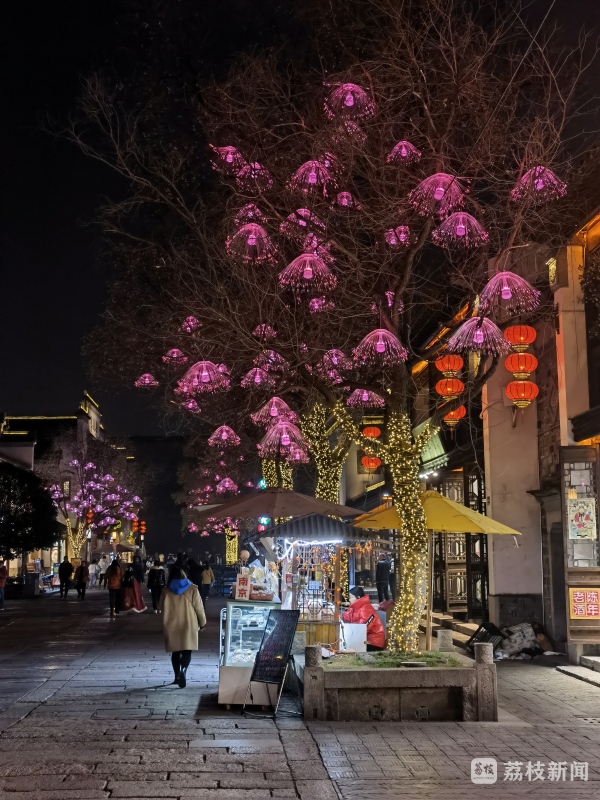 昨天(1月22日)是农历腊月二十,离2022年新春只有不到十天了,随着虎年春节的临近,南京街头各式彩灯缤纷亮相,晚六时许,南京街头已经呈现出“火树银花不夜天”的胜景,虽然天气很冷,可是也没有挡住游客的热情,大家纷纷拍照留念。