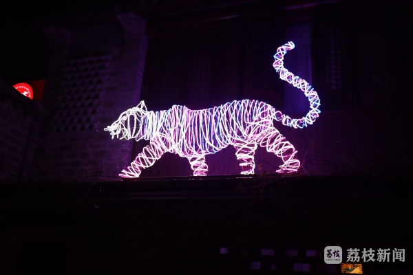 2022年是农历虎年,以虎为造型的各式彩灯也成为市民的最爱,在南京老门东12只形态各异、憨态可掬的“萌虎”彩灯今天也闪亮登场,各种可爱的老虎花灯活力四射,吸引很多市民游客的目光。
