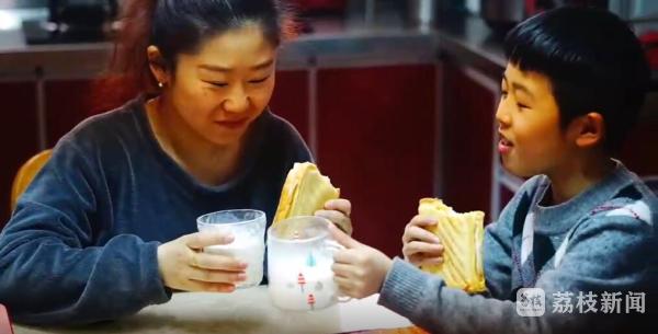 “老母亲”睡了个懒觉,吃上了儿子的早餐,甭提多开心了↑